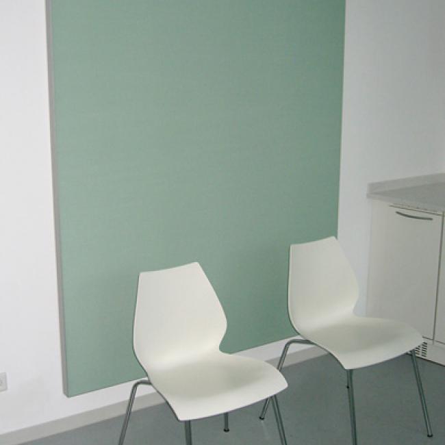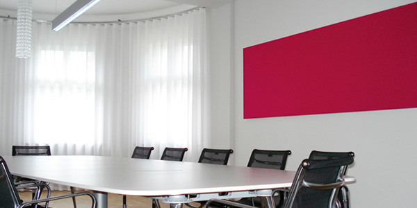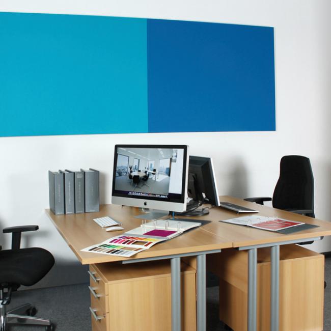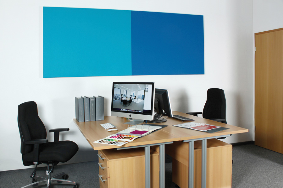 Schick und schallabsorbierend: Basotect®-Schaumstoff als Sonic-Panel und Acoustic-Frame. Die hochwirksamen Akustik-Elemente überzeugen durch Ihr klares Design und Ihren vielseitigen Einsatz als Raumteiler, an Wänden und Decken. Verkleidet mit farbigen Stoffbespannungen, setzen die Akustik-Elemente in jeder Umgebung gekonnt Akzente.